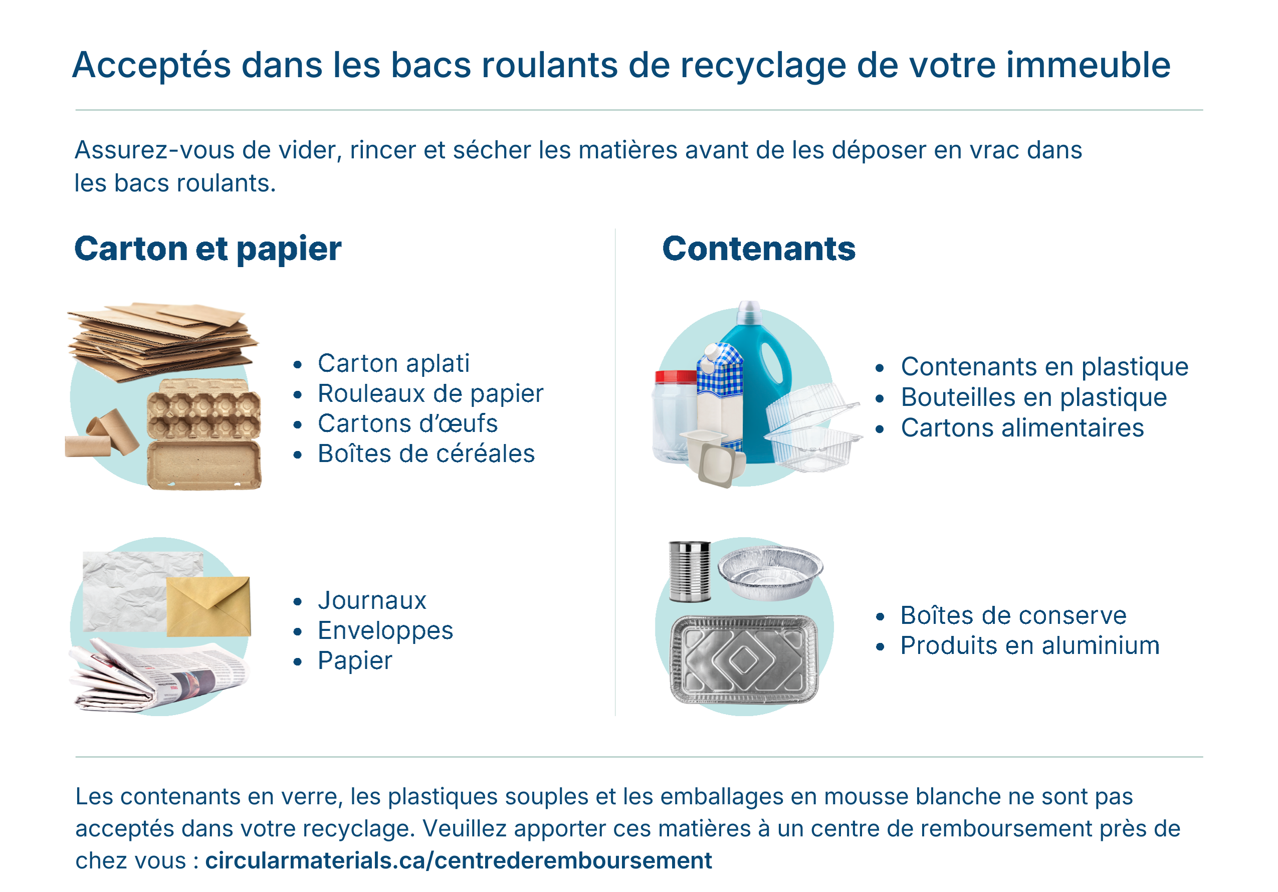 Ces matériaux ne sont pas acceptés pour le recyclage dans votre bâtiment :