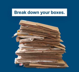 Flatten and bundle: All cardboard should be flattened and bundled.