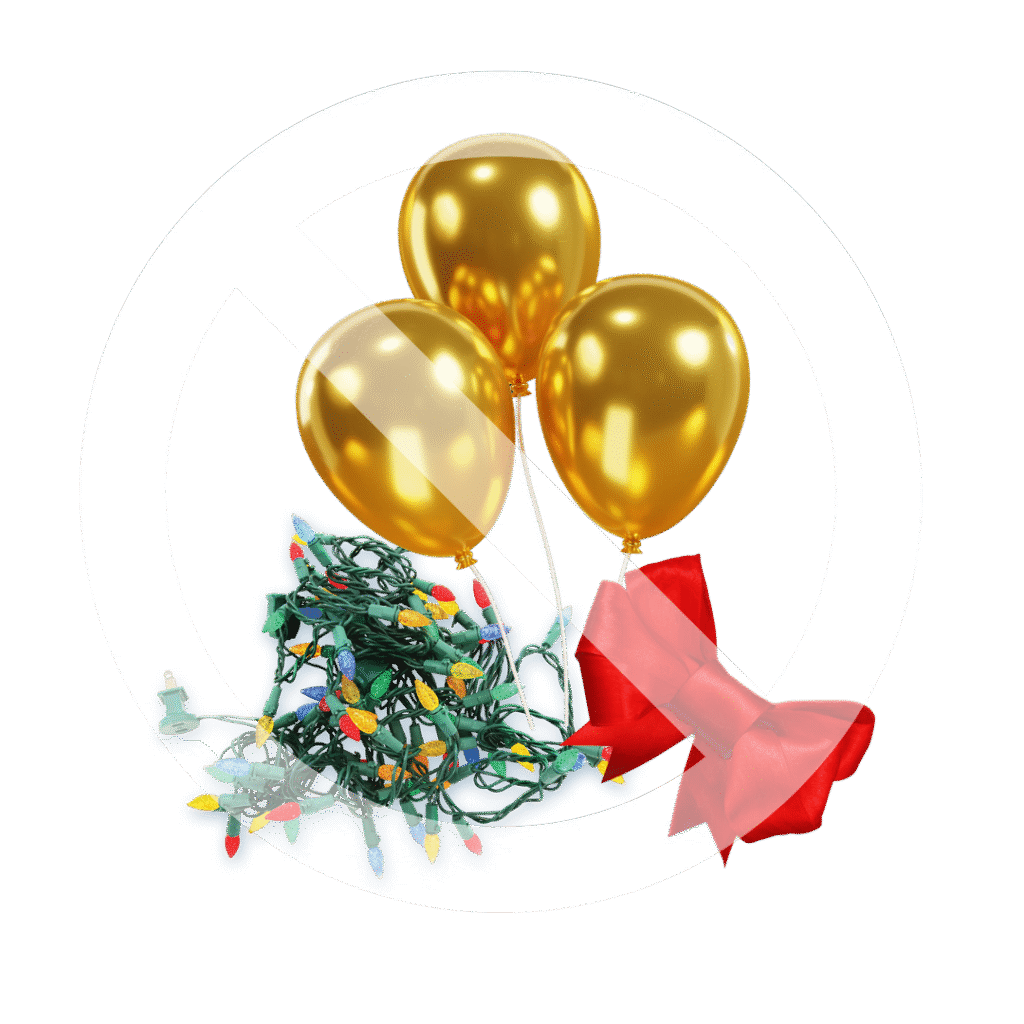 String lights, balloons, ribbons, glitter cards and foil wrapping paper are not recyclable.