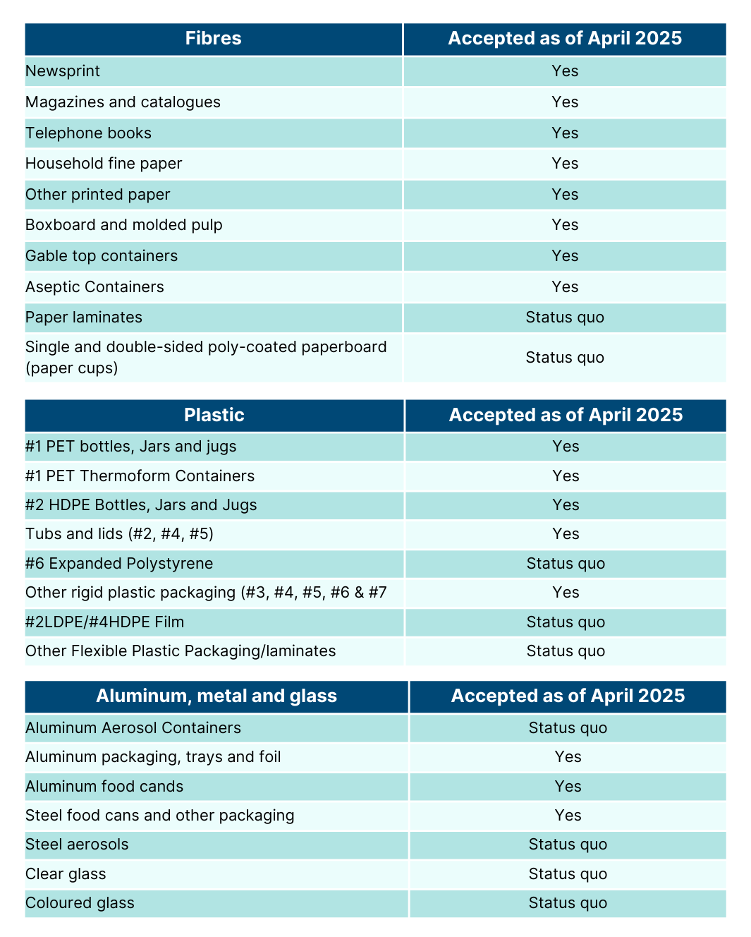The base list of accepted PPP materials will apply to every community receiving curbside collection starting April 1, 2025.