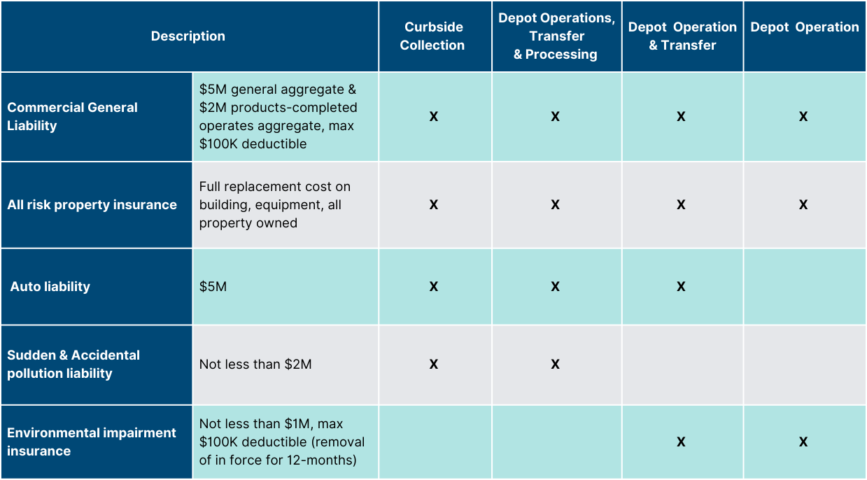 The below insurance requirements are applicable to both curbside and depot operators.